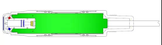 氧是一種重要的元素,其以不同的形式在人們的生產(chǎn)生活以及自然環(huán)境中起到了重要的作用。其中以分子形式存在于水中,以每升水中所含氧氣的毫克數(shù)來表示的量稱之為溶解氧(DO)濃度。溶解氧是保證水生物生存的重要條件之一,同時也是用來衡量水質(zhì)是否受污染的重要指標(biāo)之一。我們可以通過監(jiān)測和研究水中溶解氧的多少及其變化規(guī)律來判斷水體的健康程度以及水體的自凈能力。例如,在水質(zhì)監(jiān)測過程中,如果溶解氧含量過高,則會導(dǎo)致水中生物氧氣中毒,而溶解氧含量過低時,水體中的厭氧菌就會很快繁殖,有機物因腐敗而使水體變黑、發(fā)臭。在污水處理中,溶解氧的含量高低影響到細菌的存活以及活躍度,從而影響污水處理的有效程度。因此,溶解氧的檢測是具有重要意義的。 目前測量溶解氧的方法主要有碘量法、電化學(xué)法、分光光度法、氣相色譜法、原子吸收法和熒光分析法等。其中應(yīng)用最廣泛的主要是碘量法、電化學(xué)法和熒光分析法。碘量法雖然是國際上公認的測定水中溶解氧的方法,也是測定海水中溶解氧的首選方法,但是其只能離線測定、費時費力、操作復(fù)雜、無法對溶解氧濃度變化做出及時的反饋以及極易受環(huán)境因素的影響,從而限制了其廣泛應(yīng)用。電化學(xué)法,即 Clark 電極法也是國標(biāo)推薦的溶解氧測試方法之一。該方法雖然能實現(xiàn)實時在線測量,但由于水質(zhì)中可能存在有機物、油類、鹽類等物質(zhì)會導(dǎo)致薄膜的阻塞老化及電極的腐蝕等從而影響其測量精度及響應(yīng)時間。近十多年來,基于熒光猝滅原理所制備的溶解氧傳感器由于其具有響應(yīng)時間快、不耗氧、無參比電極、不受磁場干擾等優(yōu)點引起了越來越多人的興趣和關(guān)注。我們基于熒光分析法制備了一種能應(yīng)用于實際檢測中的熒光法溶解氧傳感器,并對其結(jié)構(gòu)及性能等進行了討論。 1 熒光膜的研究 熒光法溶解氧傳感器利用氧對一些物質(zhì)的具有熒光猝滅的作用,從而物質(zhì)的熒光強度及壽命降低,溶解氧濃度與光強及熒光壽命的關(guān)系可用Stern-Volmer 方程來表示: 上式中,I0和 τ0 分別為無氧時的熒光強度和熒光壽命,I和τ為有氧時的熒光強度和熒光壽命,KSV為猝滅劑的猝滅常數(shù),[O2]是溶解氧濃度。由(1)式可知,通過測量熒光強度或者熒光壽命,就可以計算出溶解氧的濃度。雖然利用物質(zhì)的熒光強度來計算氧含量比較簡單,但是由于物質(zhì)的熒光強度容易受到外界因素如光、溫度等的影響,從而導(dǎo)致測量誤差。而利用熒光壽命測量對比熒光強度的測量雖然結(jié)構(gòu)上會較為復(fù)雜,但熒光壽命是熒光物質(zhì)的本征參量,對熒光壽命的測量不會受太多外界因素變化的影響,所以具有很好的抗干擾能力。 我們研究的溶解氧傳感器采用相位法來測量熒光壽命,相位法測量中所用的光源經(jīng)過正弦調(diào)制后被激勵發(fā)光,熒光物質(zhì)被該束光激發(fā)產(chǎn)生的相應(yīng)熒光也是按照正弦波規(guī)律變化的,光電探測器探測到的熒光相對于調(diào)制光會有一滯后相移φ,φ與熒光壽命時間τ有如公式(2)關(guān)系: 其中ω是正弦調(diào)制信號的角速度:ω=2πf;而由于激發(fā)光激勵所產(chǎn)生的熒光與激發(fā)光之間會有一定的時間差。我們可以看作當(dāng)某一特定的頻率的光照射在氧敏感膜上時,氧敏感膜中熒光物質(zhì)發(fā)出的激發(fā)光與發(fā)射光二者之間有一定的滯后相移,而這一定的滯后相移又與熒光壽命成某種關(guān)系如公式(3),因此,可以通過測量激發(fā)光和發(fā)射光之間的滯后相移來實現(xiàn)對熒光的測量。 1.1化學(xué)試劑及主要儀器 正硅酸乙酯(TEOS)采購自阿拉丁試劑網(wǎng);二甲基甲氧基硅烷(DiMe-DMOS)采購自阿拉丁試劑網(wǎng);四氫呋喃采購自阿拉丁試劑網(wǎng);N,N-二甲基甲酰胺采購自國藥集團化學(xué)試劑有限公司;4,7-二苯基-1,10-菲咯啉釕(Ru(dpp)3Cl2)采購自阿拉丁試劑網(wǎng)。 4A磁力攪拌器,供應(yīng)商是鞏義市予華儀器責(zé)任有限公司;KW-4A勻膠機,供應(yīng)商是中國科學(xué)院微電子研究所;CL-200F光譜儀,供應(yīng)商是杭州科興光電有限公司。 1.2 實驗步驟 取一定體積比的TEOS與DiMe-DMOS于錐形瓶中加入適量的去離子水和0.01 mol/L的HCl,常溫攪拌,攪拌過程中再加入一定質(zhì)量的Ru(dpp)3Cl2,避光攪拌6 h。取所制備的凝膠液在經(jīng)過表面處理的玻璃基材上旋涂成膜,于烘箱中固化24 h,取出后避光保存以備用。 2 傳感器設(shè)計 2.1 系統(tǒng)結(jié)構(gòu)設(shè)計 傳感器系統(tǒng)結(jié)構(gòu)包括以下三部分:熒光膜模塊、光路模塊、電路模塊,如圖1所示: 圖1 傳感器系統(tǒng)結(jié)構(gòu) 整個傳感器的工作過程為:一束特定波長的激發(fā)光源以方波調(diào)制的形式發(fā)出光線照射在氧敏感膜上,光化學(xué)傳感膜中的熒光物質(zhì)受到激發(fā)而發(fā)出相應(yīng)特定波長的熒光,由于氧敏感膜與被測水樣相接觸,水中的溶解氧將對熒光產(chǎn)生淬滅作用,熒光壽命被縮短,熒光強度被降低,經(jīng)淬滅后的熒光透過光學(xué)系統(tǒng)中的濾光片傳送到光電探測裝置,熒光信號經(jīng)過光電轉(zhuǎn)換,光電信號經(jīng)過放大濾波后進入相位差檢測模塊,從而得到熒